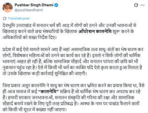 मुख्यमंत्री पुष्कर सिंह धामी ने कहा है कि उत्तराखंड, जिसे देवभूमि भी कहा जाता है, में धर्म, आस्था और अध्यात्म की गहरी जड़ें हैं. इसलिए, इस राज्य में किसी भी तरह की धार्मिक ठगी और पाखंड फैलाने वाले तत्वों को बर्दाश्त नहीं किया जाएगा. सरकार का यह कदम उन असामाजिक तत्वों के खिलाफ है जो आस्था का गलत फायदा उठाकर समाज में भ्रम और शंका फैलाते हैं. ‘ऑपरेशन कालनेमि’ के तहत, पुलिस और प्रशासन के अधिकारियों को सक्रिय रूप से ऐसे अपराधियों की पहचान करने और उनकी गतिविधियों पर नजर रखने के लिए निर्देशित किया गया है.