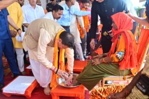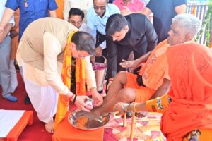 हरिद्वार: मुख्यमंत्री पुष्कर सिंह धामी ने हरिद्वार पहुचकर ओम पुल के निकट गंगा घाट पर आयोजित प्रतिभाग किया तथा देशभर से आए शिवभक्त कांवड़ियों के चरण धोकर स्वागत किया व उन्हें सम्मानित किया। उन्होंने आयोजित भजन सन्ध्या में भी प्रतिभाग किया। इस अवसर पर मुख्यमंत्री श्री पुष्कर सिंह धामी ने कहा कि यह मेरा सौभाग्य है कि शिव भक्त कांवड़ियों का पैर पखार कर उनका आशीर्वाद लेने का अवसर प्राप्त हुआ।